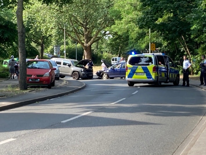 Am Samstagnachmittag gegen 17:10 Uhr wurde der Feuerwehr Oberhausen ein Verkehrsunfall auf der Harkortstraße zwischen zwei PKW gemeldet.