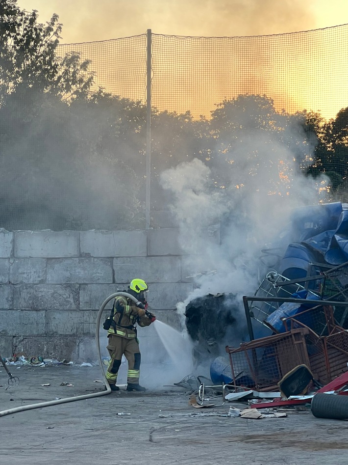 Ein aufmerksamer Bürger hatte im Vorbeifahren auf dem Außengelände eines Umweltservice- und Entsorgungsbetriebs die Rauchentwicklung bemerkt und gemeldet.