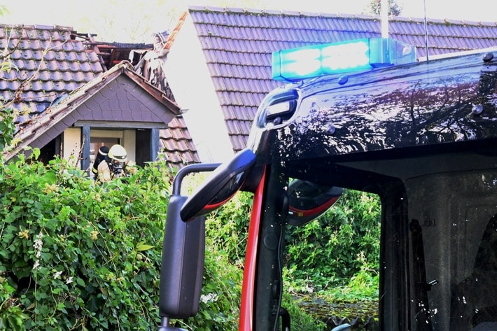 Am Sonntagmorgen (19.11.2023) wurde gegen 10:00 Uhr die Leitstelle des Rhein-Erft-Kreises über einen Gebäudebrand informiert. Diese alarmierte umgehend die Hauptamtliche Wache sowie die Löschzüge Brauweiler und Geyen der Feuerwehr Pulheim. Beim Eintreffen der ersten Kräfte waren schon Flammen aus dem Dachstuhl sichtbar. Die Bewohner hatten das Gebäude bereits verlassen und eigene Löschversuche unternommen. Sofort wurde mit der Brandbekämpfung in der Brandwohnung begonnen, hierzu wurden im Einsatzverlauf insgesamt vier Trupps unter schwerem Atemschutz eingesetzt. Parallel dazu wurde die Drehleiter in Stellung gebracht, um gegebenenfalls eine Brandbekämpfung vom außen einzuleiten. Die Löschmaßnahmen im Inneren zeigten schnell Wirkung. Die Dacheindeckung wurde geöffnet und die Dachkonstruktion mittels Wärmebildkamera auf versteckte Glutnester kontrolliert. Eine weitere Brandausbreitung, auch auf das nebenliegende Gebäude, konnte verhindert werden.