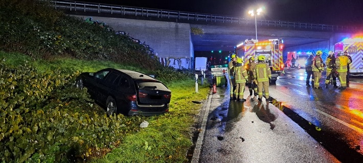 Durch den Zusammenstoß geriet der BMW-Fahrer mit seinem Wagen links von der Fahrbahn ab und blieb im Seitenstreifen/Böschung liegen. Das zweite beteiligte Fahrzeug verblieb auf der Hauptstraße in Fahrtrichtung Ratingen. Die beiden beteiligten Insassen waren nicht eingeklemmt.
