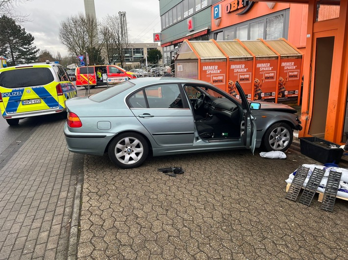 FW Ratingen: Verkehrsunfall – PKW fährt in Geschäftshaus