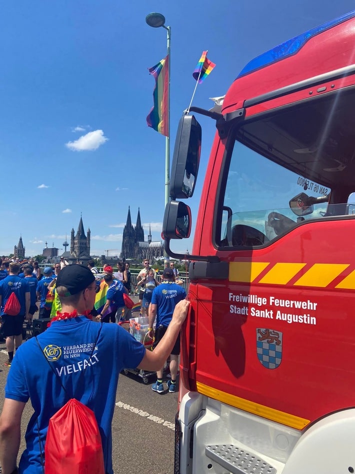FW Sankt Augustin: Freiwillige Feuerwehr Sankt Augustin stellt Begleitfahrzeug für CSD-Parade + + + Einheit Buisdorf unterstützt Verband der Feuerwehren NRW