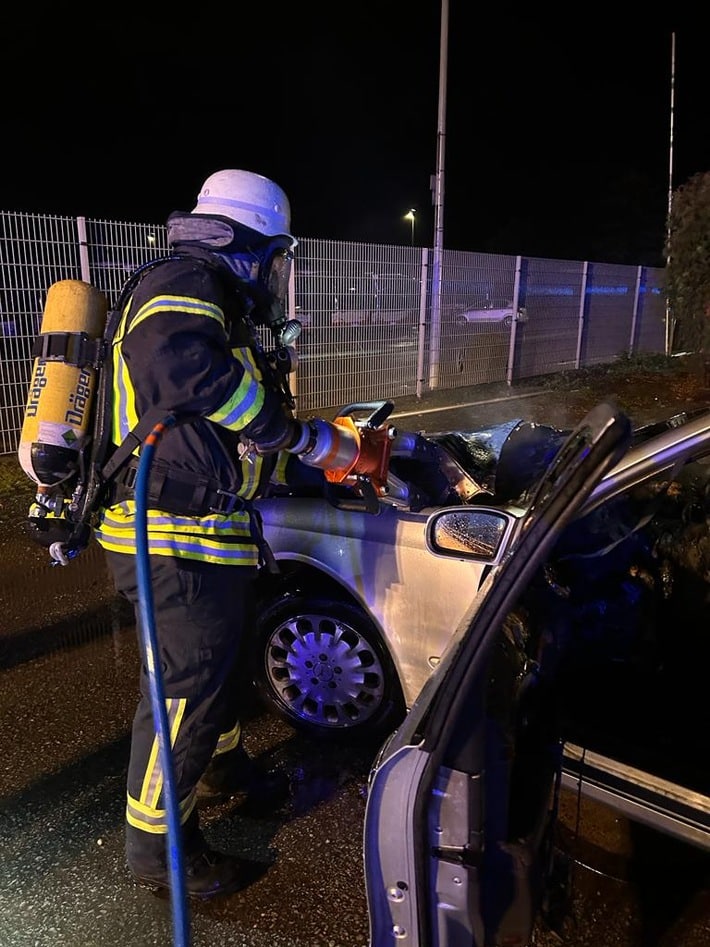 Dort brannte ein PKW, welcher von den Einsatzkräften unter schwerem Atemschutz gelöscht wurde.