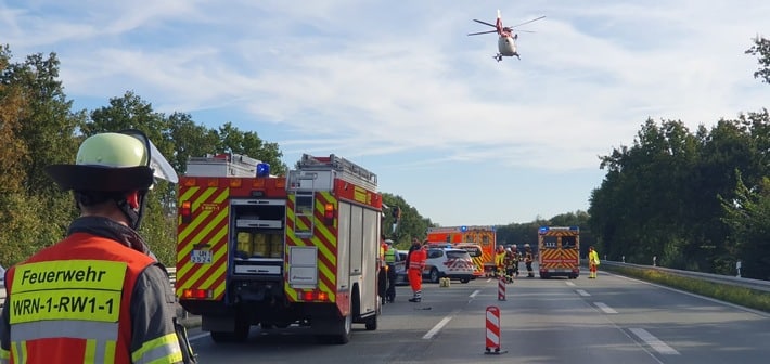 Im Einsatz waren 12 Einsatzkräfte mit drei Fahrzeugen [1-ELW1-1, 1-RW1-1, 1-TLF3000-1], der Rettungsdienst und die Autobahnpolizei.