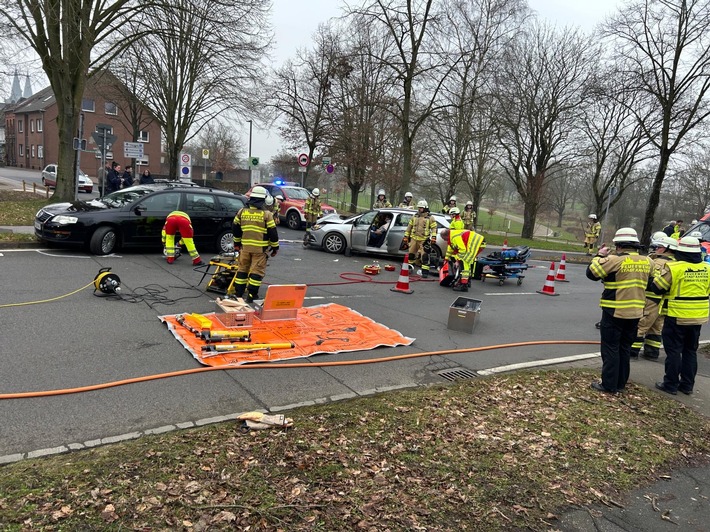 FW Xanten: Verkehrsunfall zwischen zwei PKW – Feuerwehr befreit verletzte Person