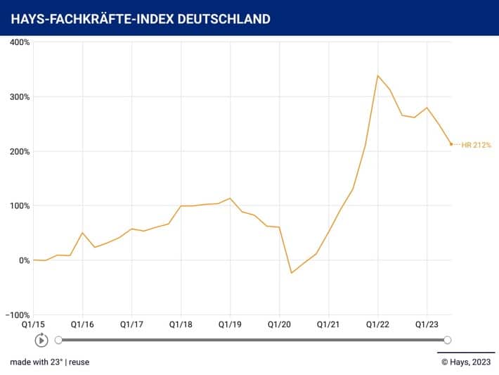 Hays Fachkräfte-Index Q3/2023 / Nachfrageeinbruch im dritten Quartal