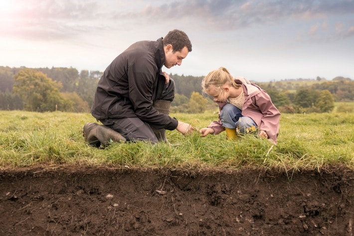 Nach Angaben des Bundesinformationszentrum Landwirtschaft[2] sind hierzulande in landwirtschaftlich genutzten Flächen etwa 2,4 Milliarden Tonnen Kohlenstoff gespeichert. Damit bevorraten die Böden mehr als doppelt so viel Kohlenstoff wie der gesamte Baumbestand in deutschen Wäldern und mehr als das Dreifache der CO2-Menge, die in ganz Deutschland pro Jahr freigesetzt wird. Dabei speichern Dauergrünlandflächen, wie etwa die Weiden bei der Rinderhaltung, durchschnittlich doppelt so viel Kohlenstoff pro Hektar im Vergleich zu Ackerböden. Von einem gesunden Boden profitieren wir daher nicht nur durch eine gute Ernte, sondern er ist auch ein zentrales Argument, wenn es um das Klima geht. Aus diesem Grund widmen sich nun europaweit rund 900 Arla-Bio-Landwirte im Rahmen des neuen Arla Bio-Standards auch dem Thema Bodengesundheit und sammeln dabei Erkenntnisse darüber, was einen gesunden Boden ausmacht, der als großer CO2-Speicher dienen kann.