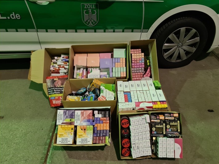 Bei den Kontrollen stellten die Beamten insgesamt 24 Dosen unversteuerten Wasserpfeifentabak mit gefälschten Steuerzeichen, 24 Dosen unversteuerte Dampfsteine, fünf Dosen unversteuerte Rauchwatte, einen Softpack unversteuerten Feinschnitt mit gefälschtem Steuerzeichen, 1.316 unversteuerte Einweg E-Zigaretten (teilweise Markenfälschungen und nicht verkehrsfähig), 160 Dosen nicht