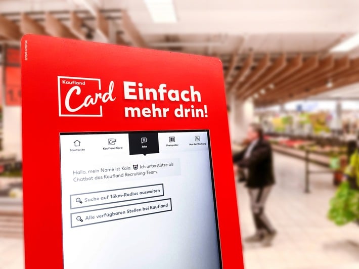 Kaufland-Kunden können sich ab sofort auch einen neuen Job auf ihren Einkaufzettel schreiben, die Bewerbungsmappe beim Filialbesuch aber getrost zu Hause lassen. Das Unternehmen setzt in allen Filialen deutschlandweit einen digitalen Service ein, mit dem eine einfache und schnelle Bewerbung direkt vor Ort ermöglicht wird. „Kala“ – ein Wortspiel aus Kaufland – heißt der eigens entwickelte Bot, der Berufsinteressenten am Terminal direkt neben der Kundeninformation durch gezielte Fragen zur Stelle ihrer Wahl leitet. „Als attraktiver Arbeitgeber bieten wir zahlreiche berufliche Einstiegs- und Entwicklungsmöglichkeiten in den unterschiedlichsten Tätigkeitsbereichen. Für unser Recruiting nutzen wir bereits soziale Netzwerke wie Instagram und TikTok, aber auch Zielgruppenplattformen und Google. Nun beschreiten wir mit einem eigenen, digitalen Service direkt in unseren Filialen neue Wege“, sagt Franziska Knoll, Abteilungsleiterin Personal bei Kaufland.