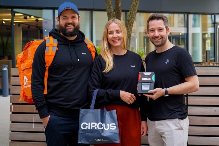 Um eine Essensbestellung ganzheitlich nachhaltig zu gestalten, fehlte es bisher an nachhaltigen Liefertaschen. Das wollen das Foodtech-Startup Circus in Zusammenarbeit mit Vytal ändern. Gemeinsam wurde eine Mehrwegtasche entwickelt, die Circus Kund:innen kostenlos zu ihrer Essensbestellung hinzufügen können. Vytal testet so erstmalig eine Kreislauflösung für Sekundärverpackungen. Denn die Vytal Technologie lässt sich ganz leicht auf weitere Anwendungsbereiche für das Ausleihen und Teilen mobiler Gegenstände erweitern.