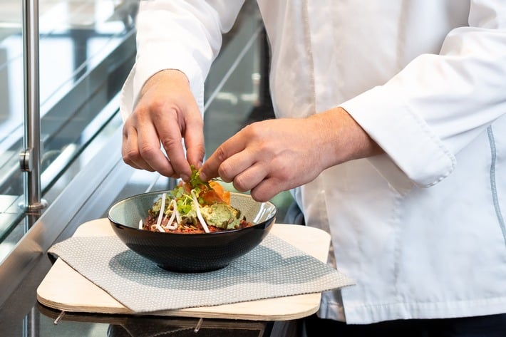 Frischen Wind in die beiden Betriebsrestaurants bringt eine wechselnde Küche mit regionalen Klassikern und internationalen Spezialitäten. Zusätzlich haben die Mitarbeitenden die Möglichkeit, sich aus einer Vielzahl von Komponenten und Beilagen ihr eigenes Gericht zusammenzustellen. Das Angebot wird voraussichtlich ab Sommer 2024 durch intelligente Kühlschränke ergänzt, die den Mitarbeitenden in der Spät-, Nacht- und Wochenendschicht frisch zubereitete Speisen in Mehrwegbehältern bieten, die in der Mikrowelle erwärmt werden können. Zusätzlich zu warmen Mahlzeiten sind in der Zwischenverpflegung als auch in den intelligenten Kühlschränken belegte Brötchen, süße Teilchen, Kuchen und eine Vielzahl weiterer Leckereien verfügbar. Beim Einkauf setzt Klüh Catering im Rahmen seiner Nachhaltigkeitsstrategie überwiegend auf die Zusammenarbeit mit Lieferanten aus der Region.