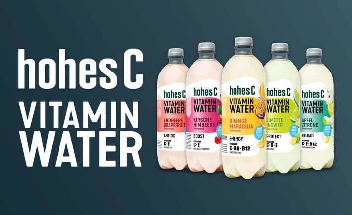 – Mehr Geschmack und Vitamine gefällig? Dann ist hohes C Vitamin Water* genau das Richtige für dich: Die leckeren, natürlichen, mild prickelnden Erfrischungen mit Vitaminen und Mineralstoffen, ohne Zusatz von Zucker oder Süßungsmitteln vereinen wertvolle Nährstoffe, abgestimmt auf individuelle Bedürfnisse für jeden Tag. Mit Geschmack aus echten Früchten und mindestens 9 % Fruchtgehalt ist hohes C Vitamin Water einzigartig. Viel trinken und den Körper dabei mit essenziellen Vitaminen und Mineralstoffen versorgen – mit hohes C Vitamin Water geht das ganz einfach und schmeckt dabei so lecker!