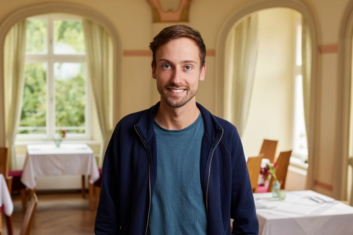 Bild 1: Jonas Mog betreibt mit viel Engagement das rein vegane und ökologische Restaurant „place to V“ im ahead burghotel.