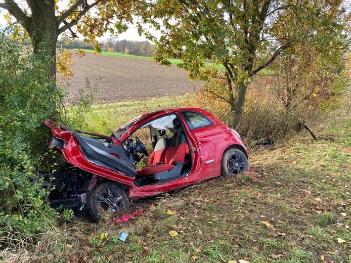 Gestern Mittag (18.11.2024) ist eine Autofahrerin mit ihrem Fahrzeug von der L240 abgekommen und gegen einen Baum geprallt.