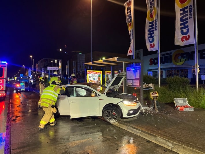 Durch den Zusammenstoß geriet der Wagen der Fahrerin ins Schleudern und prallte gegen eine Bushaltestelle, die erheblich beschädigt wurde.