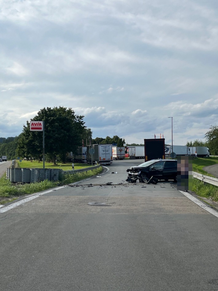 Am frühen Dienstagabend, 29.07.2025, kam es in der Zufahrt zu der Raststätte an der A 44 zu einem Verkehrsunfall mit hohem Sachschaden.