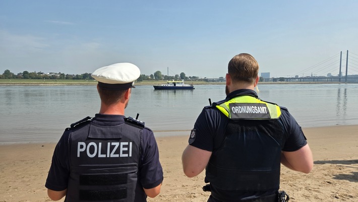 Nach dem Erlass des Badeverbots im Rhein durch die Stadt Düsseldorf unterstützt auch das Polizeipräsidium Düsseldorf den städtischen Ordnungs- und Servicedienst bei der Durchsetzung des Verbots.