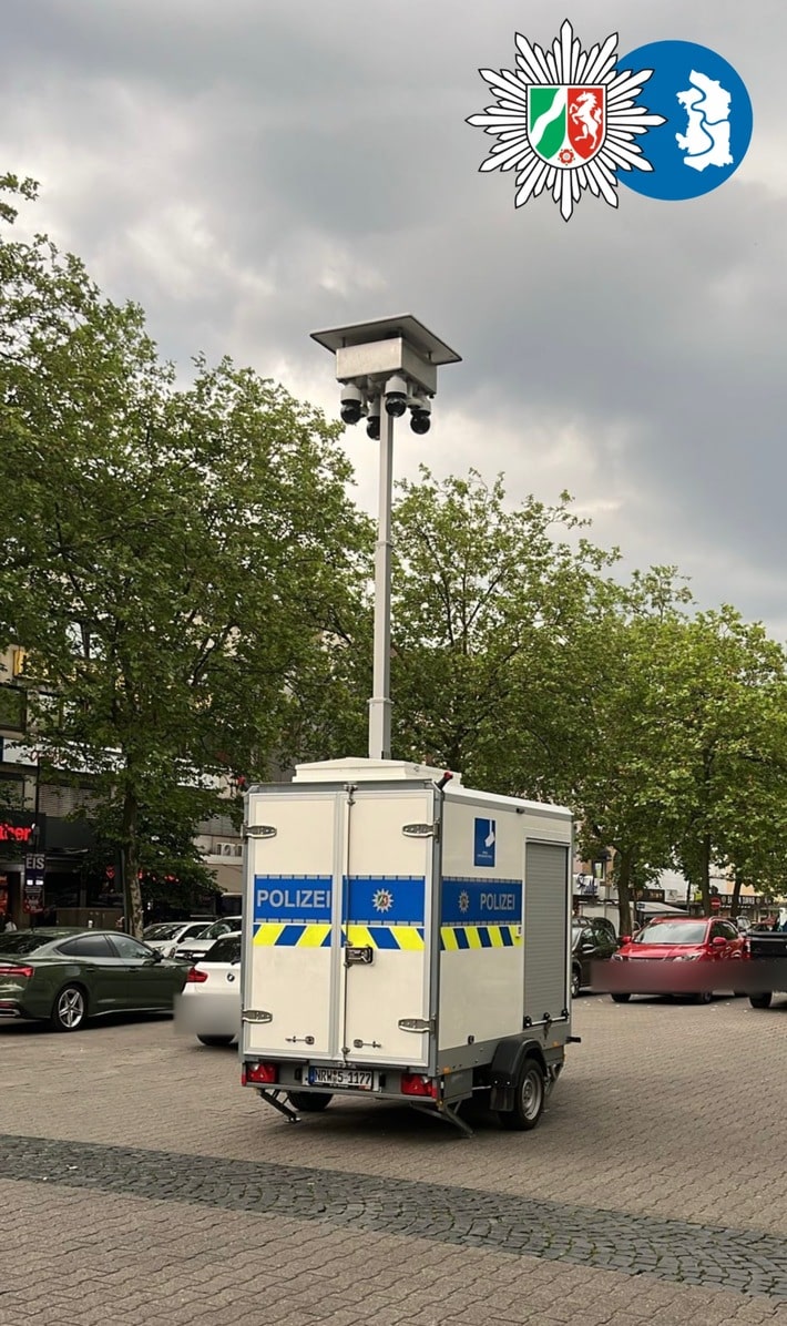 Die Videos werden in der Leitstelle der Polizei von eigens dafür geschulten Mitarbeitenden beobachtet und ausgewertet. Die Aufnahmen werden nach einer Frist von 14 Tagen automatisch gelöscht. Zum Zwecke der Strafverfolgung oder zur Verhinderung weiterer Straftaten durch eine bestimmte Person dürfen die Videoaufnahmen länger gespeichert werden. Bestimmte Bereiche – wie zum Beispiel Wohnungen oder Arztpraxen – werden im Vorfeld geschwärzt bzw. verpixelt. Es handelt sich um zwei Anhänger mit ausfahrbarem Teleskop-Kamerasystem. Das System ist auf eine Höhe von bis zu fünf Metern ausfahrbar und verfügt über sechs Kameras. Zwei Kameras sind sog. Sicherungskameras, die dauerhaft den unteren Bereich des Anhängers gegen Beschädigungen durch Unbefugte filmen. Sollte der Anhänger durch Personen angegangen werden, gibt es ein akustisches und optisches Alarmsignal und die Polizei wird verständigt. Die Rechtsgrundlage für die mobile Videobeobachtung ergibt sich aus §15a PolG NRW. Spezielle Hinweisschilder informieren die Bürgerinnen und Bürger über den Beginn der Video-Zonen.