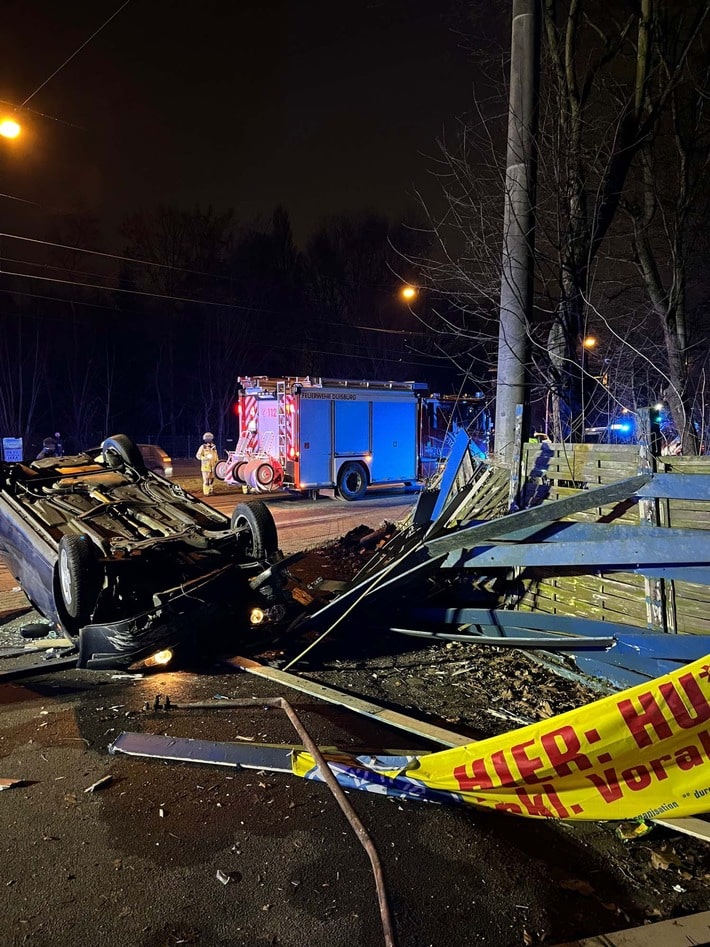 Ein 19-Jähriger Autofahrer hat sich am Sonntagabend (21. Januar, gegen 18 Uhr) mit seinem blauen VW Golf auf der Friedrich-Ebert-Straße überschlagen. Als eine Streifenwagenbesatzung am Unfallort ankam, trafen sie auf den geschockten Duisburger, der sich bereits aus dem Auto befreit hatte. Den Einsatzkräften teilte der Fahranfänger mit, dass er die Friedrich-Ebert-Straße in Richtung Walsum befahren habe, als plötzlich ein Radfahrer vor ihm die Straße überqueren wollte. Beim Versuch dem Radfahrer auszuweichen, stieß er mit einem Verkehrsschild zusammen, geriet letztendlich ins Schleudern und überschlug sich. Der Radfahrer habe sich von der Unfallstelle entfernt, noch bevor die Polizei eintraf.