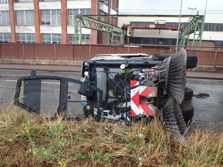 POL-DU: Wanheimerort: Kehrmaschine umgekippt – 57-jähriger Fahrer verletzt