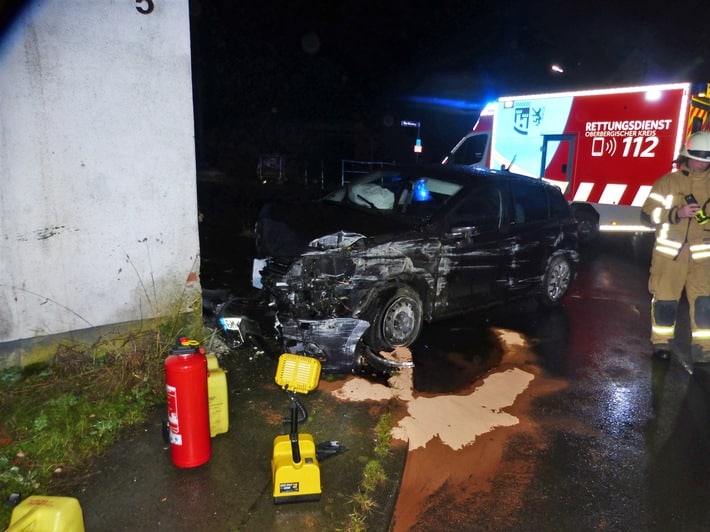 Ein 38-jähriger Gummersbacher hat am Freitagabend (25. November) in Allenbach die Kontrolle über seinen VW Polo verloren und ist frontal gegen eine Hauswand geprallt. Dabei zogen er und seine 13-jährige Beifahrerin sich schwere Verletzungen zu.