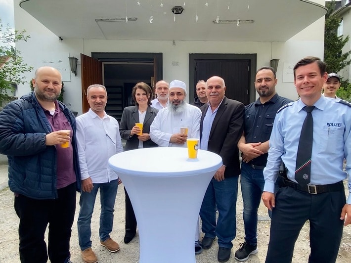 Am Freitag (10.06.2022) fand in der Zeit zwischen 14-16 Uhr die zweite Auflage der Veranstaltung „Tea with Cops“ statt. Polizeihauptkommissar Michael Siemes, Kontaktbeamter für muslimische Institutionen (KMI) bei der Polizei Hagen, lud Interessierte vor der syrischen Moschee am Bergischen Ring 99 zu einem leckeren Heißgetränk ein. An seiner Seite hatte er Kolleginnen und Kollegen aus unterschiedlichen Dienststellen, die an dem integrativen Projekt zur Förderung des Austausches zwischen Migranten und Polizeibeschäftigten teilnahmen. Auch Hagens Polizeipräsidentin Ursula Tomahogh ließ es sich nicht nehmen, auf einen Tee vorbeizuschauen und hat an der Veranstaltung mit großem Interesse teilgenommen.