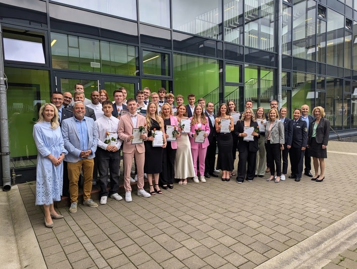 Zwei Jahre lang haben sie sich ins Zeug gelegt, jetzt gab’s die Abschlusszeugnisse: 24 junge Menschen schlossen erfolgreich den neu eingerichteten Bildungsgang „FOS Polizei“ am Klaus-Steilmann-Berufskolleg in Bochum-Wattenscheid ab. Das wurde gebührend gefeiert.