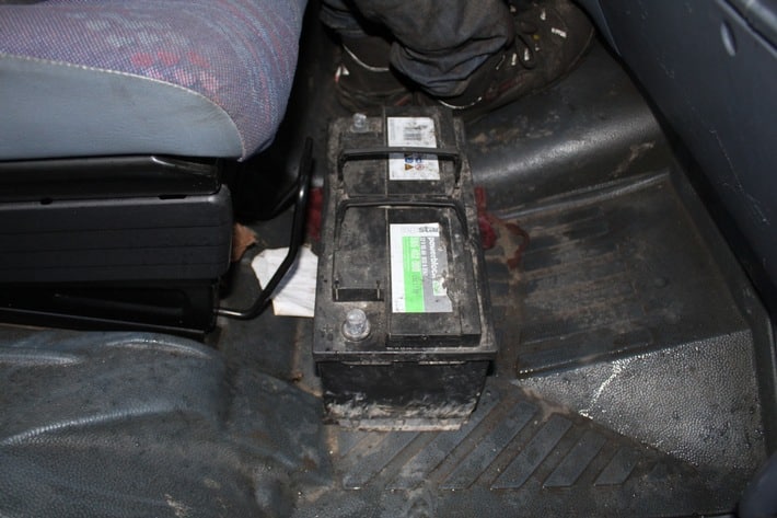 Bei der Überprüfung des Mercedes gegen 7.45 Uhr war dann schnell klar, dass die Fahrt in den Norden nicht weitergeht: Neben der teilweise kaputten Beleuchtung war die vordere Stoßstange lediglich mit Kabelbindern befestigt. Im Fußraum des Führerhauses fanden die Einsatzkräfte dann zwei lose Autobatterien, ohne die der Lkw überhaupt nicht fahrfähig war. Außerdem waren an dem Fahrzeug rote Kennzeichen angebracht, die für den Zweck der Fahrt überhaupt nicht zulässig waren.