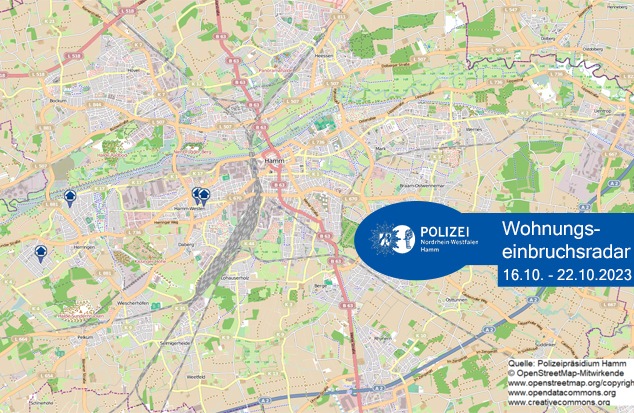 In der Woche vom 16. bis 22. Oktober 2023 gab es im Stadtgebiet zwei versuchte und zwei vollendete Einbruchsdelikte. Das zeigt das „Wohnungseinbruchsradar“ der Polizei Hamm.