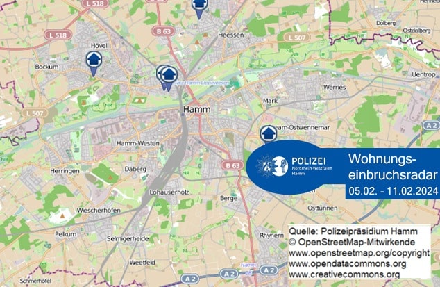 In der Woche vom 5. bis 11. Februar 2024 gab es im Stadtgebiet fünf vollendete Einbruchsdelikte. Das zeigt das „Wohnungseinbruchsradar“ der Polizei Hamm.