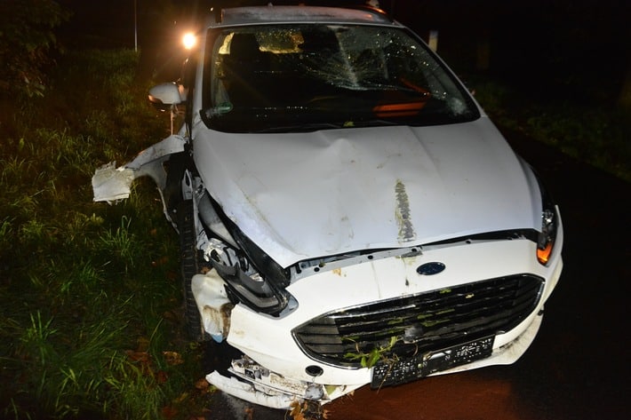 POL-HF: Ford kommt von Fahrbahn ab – Kollision mit Verkehrsschildern
