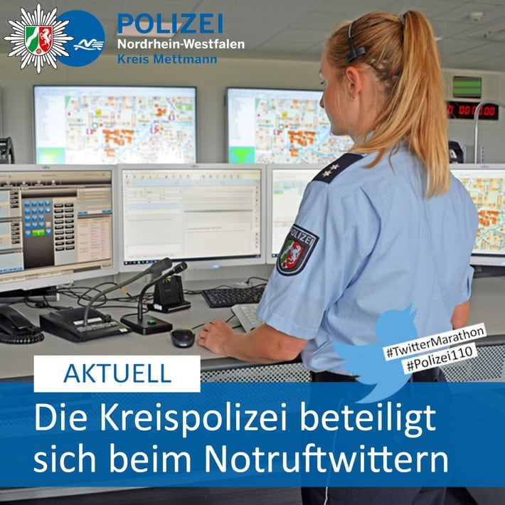 Auch die Kreispolizeibehörde Mettmann, nimmt – wie bereits im vergangenen Jahr – an dem #NotrufTwittern teil. Unter den Hashtags #Polizei110 und #NotrufTwittern können Interessierte der #PolizeiME auf ihrem Twitterkanal folgen.