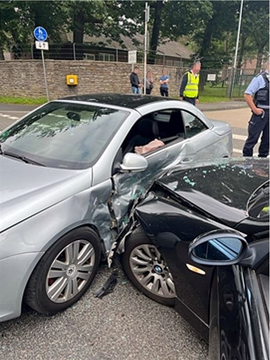 Nach dem aktuellen Stand der Unfallermittlungen beabsichtigte ein 20 Jahre alter Essener gegen 16 Uhr mit seinem VW Eos von der Zufahrt der Waldkaserne auf die Elberfelder Straße abzubiegen. Hier missachtete der Deutsche jedoch die Vorfahrt eines 3er BMW, welcher zu diesem Zeitpunkt auf der Elberfelder Straße in Richtung Haan unterwegs war. Der BMW stieß demzufolge frontal gegen die Fahrerseite des VW.