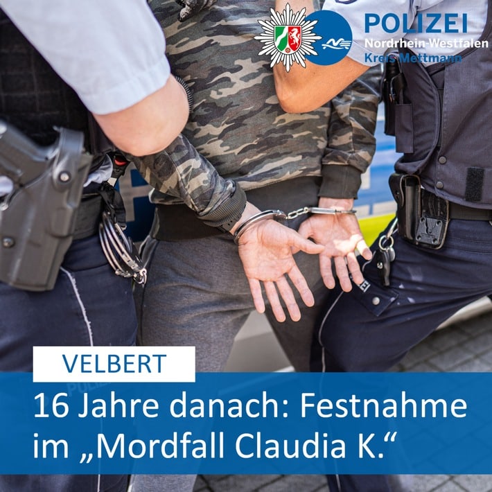 Mehr als 16 Jahre nach dem Mord an der damals 47-jährigen Claudia K. in Velbert konnte jetzt unter Federführung der Düsseldorfer Polizei und der Staatsanwaltschaft Wuppertal in Hessen ein Mann unter dringendem Tatverdacht festgenommen werden. Er befindet sich in Haft.