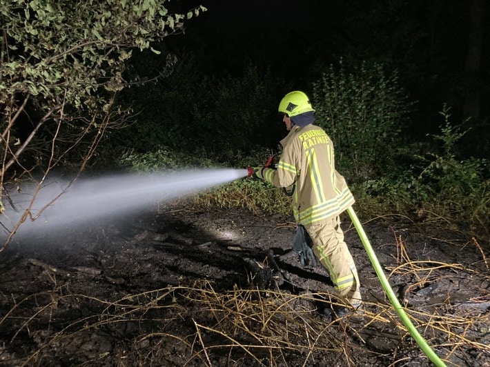 Nachdem die Löscharbeiten bei dem nächtlichen Brand abgeschlossen waren, übernahm die Polizei erste Ermittlungen hinsichtlich der Brandursache. Diese konnte bislang noch nicht einwandfrei geklärt werden. Am Sonntagmorgen wurde die Polizei dann erneut an die Örtlichkeit gerufen – gegen 8 Uhr war es hier zu einem weiteren Brand gekommen. Nach dem derzeitigen Stand der Ermittlungen geht die Polizei davon aus, dass beide Brandereignisse in Zusammenhang stehen und dass zumindest der erste möglicherweise fahrlässig oder gar vorsätzlich gelegt wurden. Konkrete Hinweise auf die exakte Brandursache liegen der Polizei jedoch aktuell nicht vor. Ob es sich bei dem zweiten Brand um eine Selbstentzündung des nachts bereits erstmals gelöschten Feuers handelte, ist noch unklar.