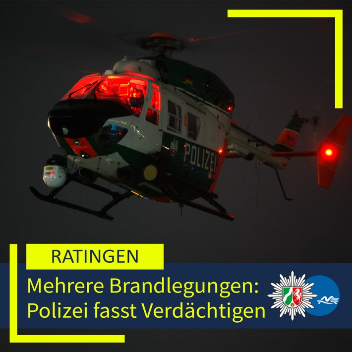 In Ratingen kam es in der Nacht auf Freitag (25. Juli 2025) zu mehreren vorsätzlich gelegten Bränden. Bei der Fahndung setzte die Polizei einen Hubschrauber ein – so konnte letztlich ein 17 Jahre junger Tatverdächtiger gestellt und vorläufig festgenommen werden.