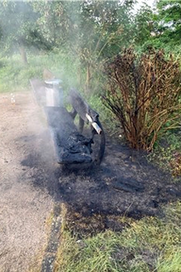 Am frühen Donnerstagmorgen, 25. Mai 2023, wurde eine Parkbank auf einem Spielplatz in Langenfeld durch ein Feuer vollständig zerstört. Die Polizei ermittelt und bittet um Zeugenhinweise.