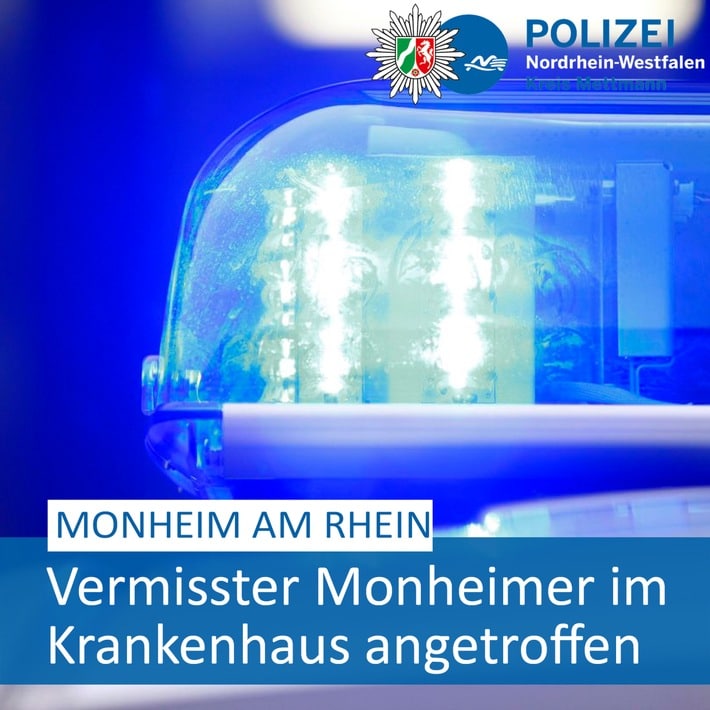 POL-ME: Rücknahme der Fahndung: Vermisster Monheimer in Krankenhaus angetroffen – Monheim am Rhein – 2210058