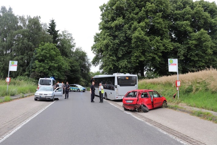 Der Ford Fiesta hat einen Totalschaden, der Bus wurde stark beschädigt. Der Gesamtschaden wird auf einen niedrigen fünfstelligen Betrag geschätzt.