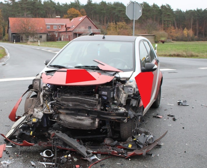 Beim Zusammenstoß zwischen zwei Autos hat sich am Montag gegen 15 Uhr eine 28 Jahre alte Smart-Fahrerin leicht verletzt.