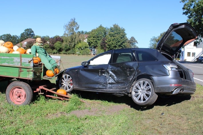 Den Erkenntnissen nach hatte ein 22 Jahre alter Audi-Fahrer aus Bohmte die Straße „An der Düwelsburg“ gegen 15.15 Uhr befahren und wollte nach links auf die Bremer Straße einbiegen. Auf der befand sich zur gleichen Zeit eine 22-jährige Fahrerin eines VW – ebenfalls aus Bohmte – und befuhr diese in Fahrtrichtung Lemförde. Als der Mann mit seinem Audi auf die Bundesstraße lenkte, kam es zur Kollision der Fahrzeuge, die Autos schleuderten auf einen Acker. Der Audi touchierte in der Folge einen auf dem Feld stehenden landwirtschaftlichen Anhänger mit Dekorationsgegenständen. Beide Fahrzeugführer verletzten sich leicht, verzichteten aber nach medizinischer Versorgung auf eine weitere Behandlung im Krankenhaus. Die Autos wurden abgeschleppt.