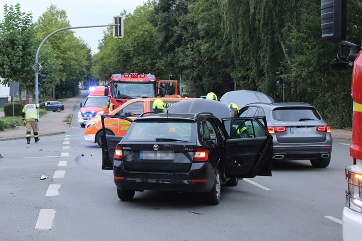 Den Erkenntnissen zufolge hatte eine Skoda-Fahrerin (32) aus Bad Oeynhausen mit vier weiteren Insassen (33, 9, 8, 4) gegen 17.45 Uhr die vorfahrtsberechtigte Weserstraße vom Südbahnhof kommend befahren. Zeitgleich war eine 36-jährige Bad Oeynhausenerin mit ihrem Nissan auf der Hermann-Löns-Straße unterwegs und beabsichtigte den Kreuzungsbereich geradeaus in Richtung Triftenstraße zu überqueren. Dabei kam es zur Kollision der beiden Autos.