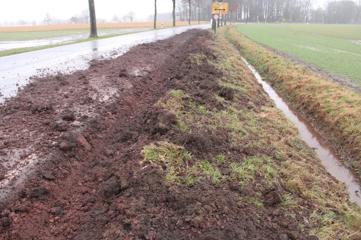 Vor Ort stellten die Beamten rund 200 Meter südlich der Kreuzung zur Rahdener Straße eine erhebliche Menge an Erdreich fest, die auf der Fahrbahn lag.