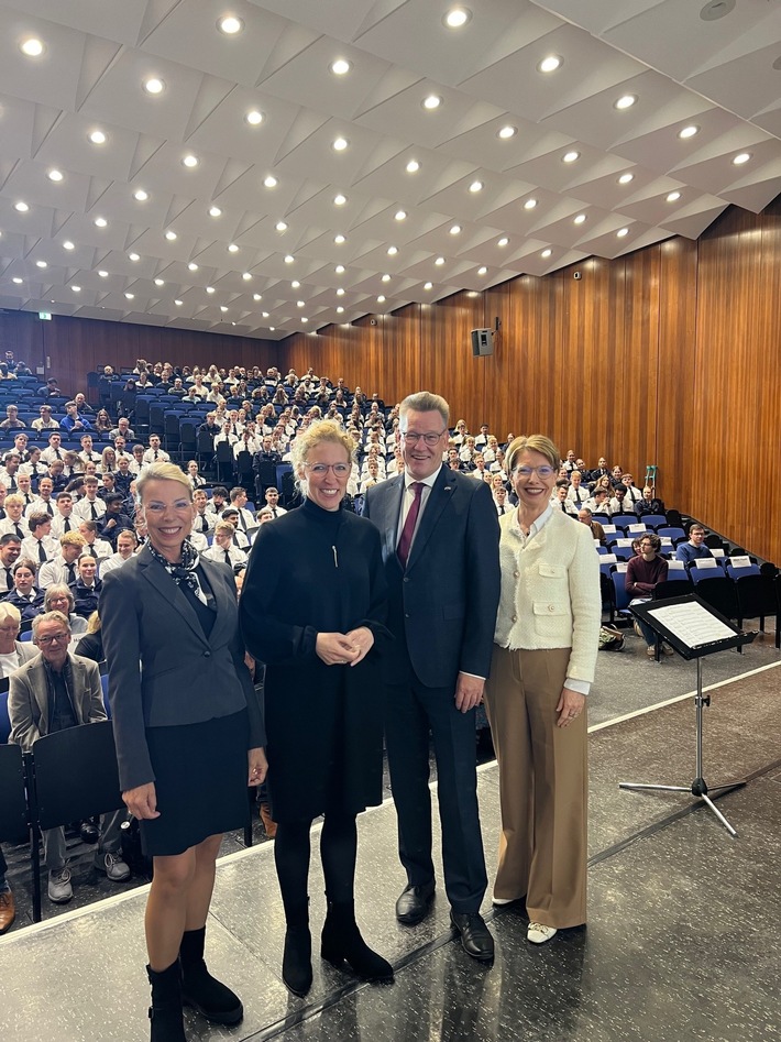 Foto: Polizeipräsidentin Alexandra Dorndorf, Rektor der Universität Münster Prof. Dr. Johan-nes Wessels, HSPV-Vizepräsidentin Prof. Dr. Iris Wiesner und Dr. Annegret Saxe, Vorständin der Sparkasse Münsterland Ost (Veröffentlichung mit der Pressemitteilung honorarfrei)