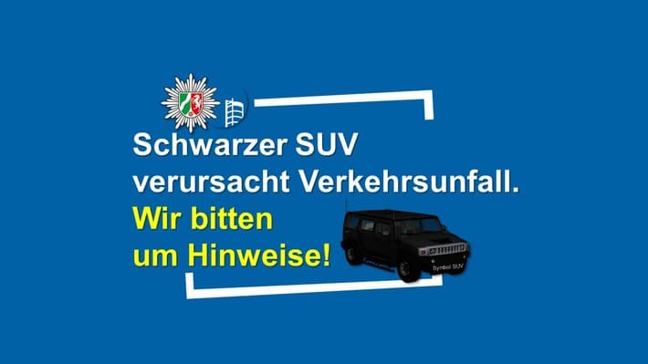 Können Sie Hinweise (Kennzeichen etc.) zu dem schwarzen SUV geben? Dann melden Sie sich bitte beim zuständigen Verkehrskommissariat der Polizei Oberhausen unter 0208 8260 oder via [email protected].