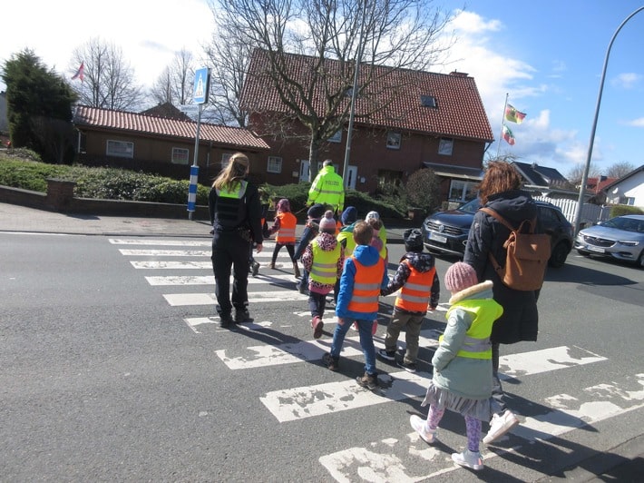 Wichtig ist, dass auch Eltern, Omas und Opas als Vorbilder im Straßenverkehr fungieren und regelmäßig mit den Mädchen und Jungen das sichere Verhalten üben. „Kinder gucken sich von den Erwachsenen viel ab. Es ist wichtig, dass sich die Großen richtig verhalten, denn Kinder erkennen Gefahren oft noch nicht. Beim Üben sollte auch mal die Perspektive der Kleinen angenommen werden, um zu verstehen, wie sie den Straßenverkehr sehen“, riet Polizeioberkommissarin Tina Betzel.