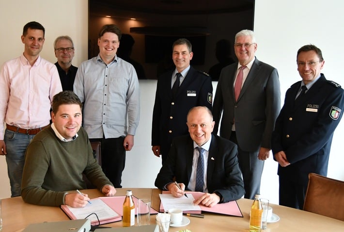 (mh) Im Sommer 2025 sollen die Erdarbeiten für den Neubau der Polizeiwache an der Oststraße in Delbrück starten. Am Dienstag, 07. Mai, trafen sich deshalb Landrat Christoph Rüther und die Investoren Philipp Fecke und Jörg Stratmann im Paderborner Kreishaus zur Vertragsunterzeichnung.