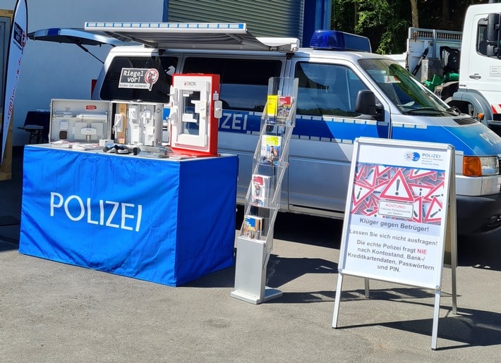 Am 10. und 11. September wird auch die Polizei Rhein-Berg jeweils von 10:00 Uhr bis 18:00 Uhr mit einem voraussichtlich vierköpfigen Team des Kommissariats Kriminalprävention/Opferschutz vor Ort sein. Der Infostand der Polizei wird in der Hauptstraße vor der Volksbank aufgestellt. „Wir wollen die Bürgerinnen und Bürger über verschiedene Themen informieren und auch sensibilisieren“, sagt Peter Liening, Leiter des Kommissariats Kriminalprävention/Opferschutz. „Es besteht zudem die Möglichkeit, sich von uns rund um Themen wie Einbruchschutz und Betrug, speziell an älteren Menschen, beraten zu lassen.“