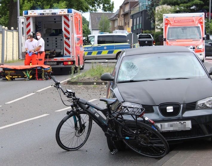 Ein 27-jähriger Kölner befuhr mit seinem Pkw der Marke Seat die Bensberger Straße in Richtung Bergisch Gladbach. Nach eigener Aussage wollte er einen Lkw, der beabsichtigte, vor ihm in die Hüttenstraße nach links abzubiegen, überholen. Beim Überholmanöver übersah er einen stehenden Pkw und musste nach rechts auf den Radweg ausweichen. Eine 47-jährige Bergisch Gladbacherin kam ihm in diesem Moment auf dem Radweg entgegen. Der Kölner kollidierte mit der Radfahrerin, die auf die Straße stürzte. Im weiten Verlauf verlor er die Kontrolle über seinen Pkw und rutschte nach links über die Mittelinsel bis zum Gehweg auf der anderen Fahrbahnseite. Das Pedelec der Verunfallten schleifte er bis zum Stillstand mit. Außerdem beschädigte er ein Verkehrszeichen.