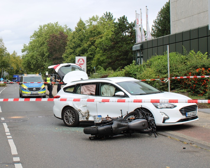 Der 38-jährige Motorradfahrer aus Bergisch Gladbach, der mit einer Maschine des Herstellers Harley-Davidson unterwegs war, kollidierte frontal mit der rechten Seite des Pkw und stürzte auf die Fahrbahn.